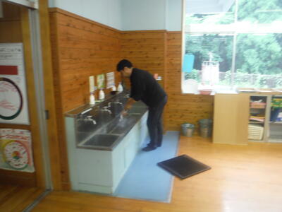 保護者の方々は,声をかけ合い互いを思いやり,協力して作業をされていました。