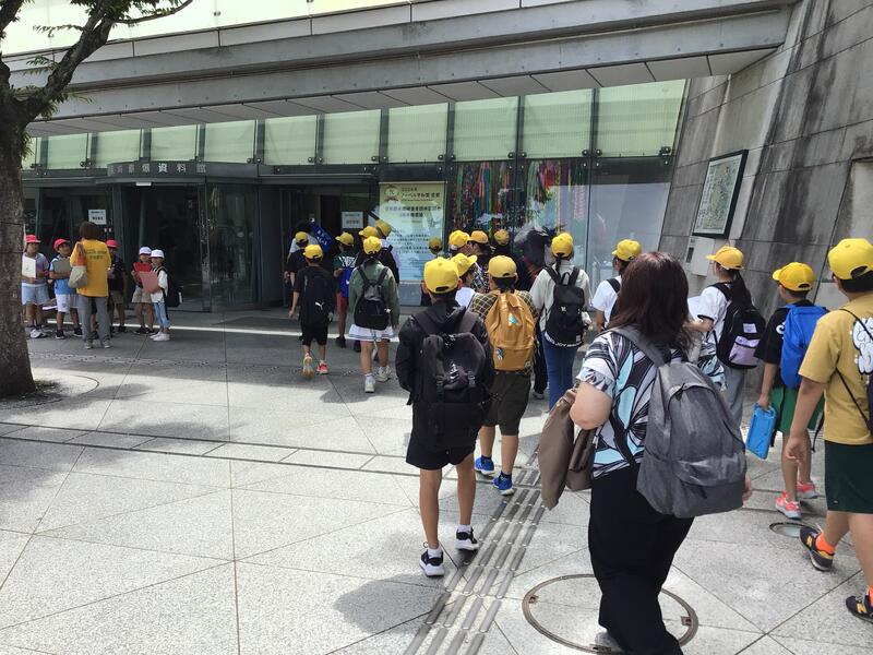 6年生は1年生と一緒に並んで現地に向かいました。歩くうちに、だんだん会話もはずんできました。そして6年生として、1年生を安全に連れて行こうという意識も高まったようでした。