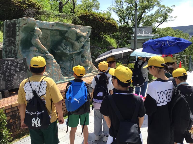 朝の集い、朝食をすませて、バスで水俣市の環境センターに到着しました。