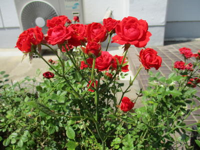 玄関横のミニバラは今が見所です。やっぱりバラといったら「情熱」の赤いバラに目がいきます。