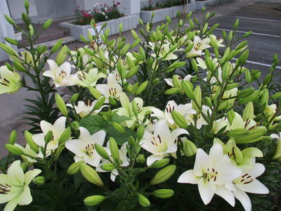 玄関前のユリが満開を迎えています。昨年植えられた2年ものだそうです。真っ白な大ぶりの花が、一斉に咲くと、華麗な中にも「威厳」を感じます。