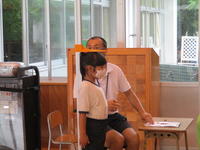 さて、今日は身体計測を行いました。身長・体重・視力、そして1・2・3・5年は聴力の検査も行いました。背すじをピンと伸ばして身長を測ったり、オージオメーターで、「ピー」という音が聞こえている間ボタンを押したり…1年生は初めて受ける検査に興味津々ながら、しっかりと説明を聞いて検査を受けることができました。器具を使った検査の後には、手指消毒もきちんとすることができました。立派な「小学生」になってきています。