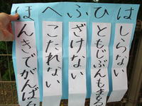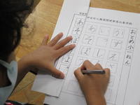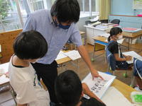 先日、1年生が国語で硬筆の練習をしていました。1年生は、すでにひらがな、カタカナの学習を終えています。甲佐町人権週間の課題を書くことで、その総まとめをしようというものです。お手本とにらめっこしながら、マスの中のどこからどこにとめ、はね、はらいをするのか、丁寧に書いていました。清書した作品は、教室や甲佐町役場に掲示することになっています。