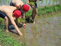 早速、5年生が田んぼに入り補植を行いました。1株からだいたい茶碗1杯分のお米がとれるそうですから、1株も無駄にできません。倒れた稲はしっかりと植え付け、田んぼのあいているところには新たに稲を植えました。天気や自然には、味方になってくれることもあれば、困らせられることもあります。