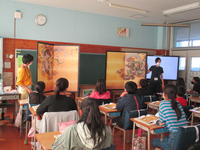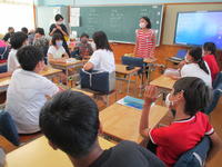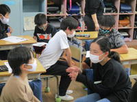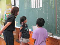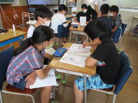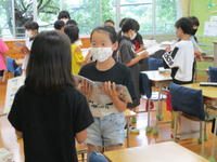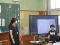 今日驚いたのは、教師の出番はほとんどなかったことでした。一人が発表すると、それに対して質問し、それに答える。さらに、「だから…」と続きを説明したり、「ここまではわかったんだけど、…」とさらに疑問を出したり…。子ども達が、問いを発しながら学んでいく姿でした。教師の出番は、子ども達の考えを黒板に書きとめ、電子黒板の使い方を補助したことと、説明のよかったところを褒め、「今ので納得した?」と確認したことでした。子どもたちにとって、「学んでいる」ことを実感し、充実した時間だったと思います。