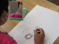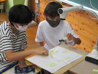 左の写真は、1年生が生活科で見つけたドングリや落ち葉を使って作っているものです。中には、自分の写真を貼ってあり、素敵なフォトフレームになりそうです。
