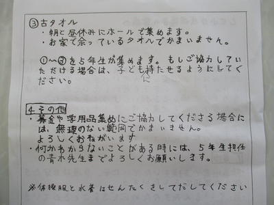 提案した5年生が、保護者へ支援を呼びかけるチラシを作ってくれました。