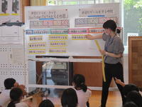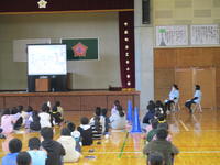 今日は、6時間目に児童会が企画運営する児童集会を行いました。どの委員会からも、お知らせやお願いを画用紙に書いて提示したり、実演を交えたりして、1年生にも分かりやすく伝えていました。
