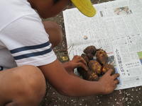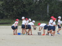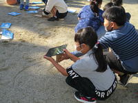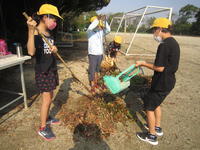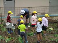 「わぁー!」3年生の歓声です。ちょうどサトイモを収穫しているところでした。プール横の畑で育てていたサトイモが、ほどよい大きさでたくさんできていました。3年生の子ども達は、とれたサトイモを新聞紙に包んでおうちに持ち帰ります。味噌汁、煮物、…どんな献立になってもおいしそうです。