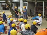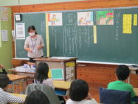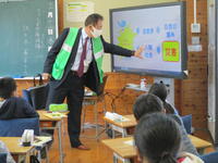 4年社会では、防災について学習をしています。 今日は、甲佐町役場くらし安全推し進室の佐々木善平室長をゲストティーチャーとしてお迎えし、災害時に役場はどんな仕事をするのかについて学習しました。
