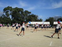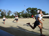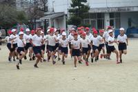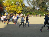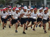 体育委員会による開会式の後、1・2年生は約1000m、3・4年生は約1600m、5・6年生は約2400mを走りました。