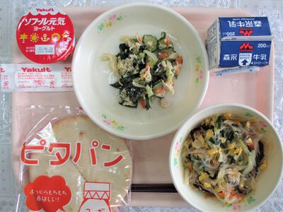 棒々鶏、春雨の炒め物、ピタパン、ヨーグルト、牛乳
