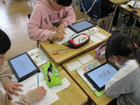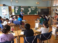本日、甲佐町内小中学校の校長先生とICT担当の先生方が来校され、1年生から6年生までのICTの授業を参観されました。甲佐町では、今年度からすべての学校にタブレットと電子黒板が導入されました。今日は、本校での活用の一端を見ていただきました。