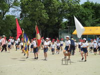 今日から運動会日課となり、本格的に運動会の全体練習を始めました。まずは、団ごとの並び方、足踏み、入場の練習です。昨年の反省をもとに、子ども達の実態を踏まえながら考えられた入場・開会式になっています。初日から天気が良く、途中休憩で水分補給をしっかり行いました。4時間目に校長室にいると、音楽室から元気な歌声が聞こえてきました。1年生が「運動会の歌」を練習しているところでした。子ども達は、運動会に向けて一生懸命に取り組んでいます。