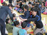 児童会が企画し、1年生を歓迎する会を行いました。1年生は、5・6年生からメダルや折り紙のプレゼントをもらい大喜びです。「じゃんけんゲーム」「猛獣狩りに行こう」などのゲームを楽しみました。