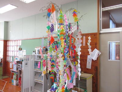 昨日(7月7日)は「七夕」でした。先日から校内の数カ所に、子供たちの願い事が書かれた七夕飾りが登場しています。