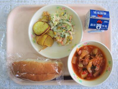 ポトフ、コスモスサラダ、ミルクパン、ヨーグルト、牛乳