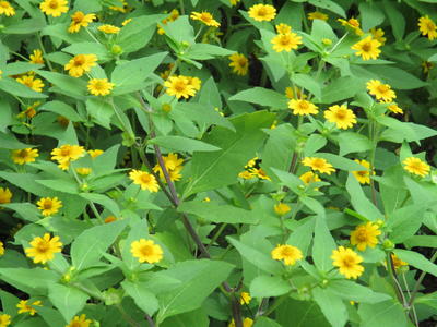 中庭や職員室前の花壇に、鮮やかな黄色のメランポジウムが咲いています。暑さに強い花のようで、次々と花を開かせています。