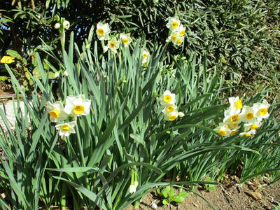 正門近くの生け垣のたもとに水仙が花を咲かせました。「水仙」という名前は中国古典から、学名「ナルシサス」という名前はギリシャ神話からきているのだそうです。