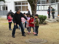 しかし、甲佐町老人クラブの皆さんや1年生のお祖母様にゲストティーチャーとなっていただき、お手玉、あやとり、竹馬、竹鉄砲、ビー玉、コマなど、いろいろな遊びを教えていただくと、夢中になって遊びだしました。