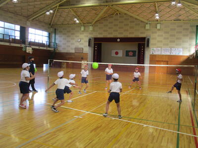 そんな中、乙女小では4年生が体育の授業で「ソフトバレーボール」に取り組んできました。はじめの頃は思うようにボールをつなぐことができませんでしたが、授業が進む中でどんどん上達し、今日(11月12日)の授業では、チームメイト同士で声を掛け合いながら上手にパスをつないだり、相手コートに打ち込んだりしながら楽しんでいました。