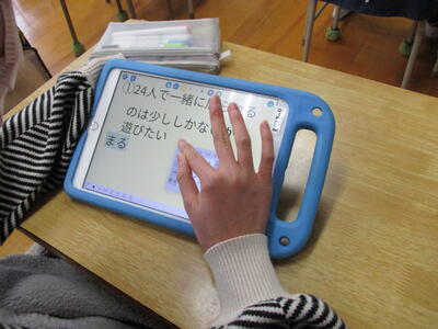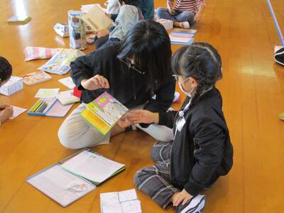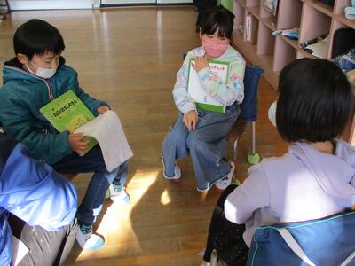 今日(1月19日)は、1年生の国語の授業で、自分が好きな本を紹介し合いました。それぞれグループに分かれて、「ねずみくんのチョッキ」や「ねこのおすしやさん」など、各自が本の面白いところなどを発表し、それを聞いた友達は質問や感想を発表しました。