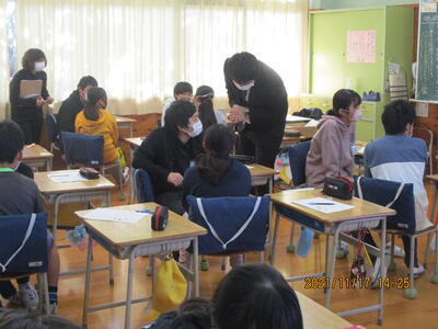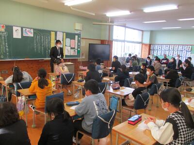 町内のたくさんの先生方が参観する中で、6年生は積極的に意見を交流したり、自分の考えを発表したりすることができました。参観していただいた先生方からは、「やさしく温かい学級の雰囲気が伝わる授業だった」「担任の先生と子供たちの信頼関係が素晴らしかった」などの意見や感想をいただきました。