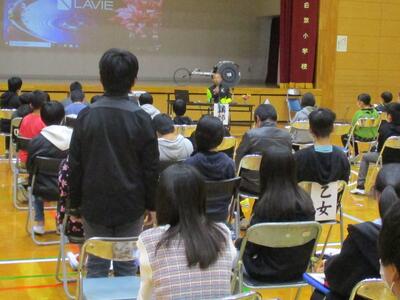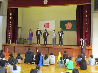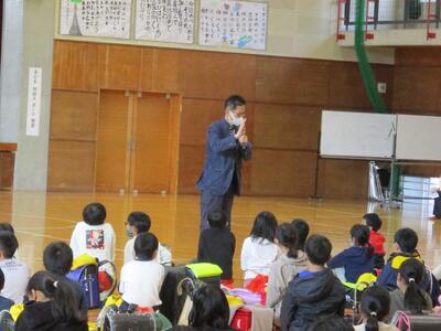 今日(11月26日)は、午後からNPO法人「安全安心まちづくり研究会」の方々に来校いただき、PTA主催の親子教育講演会が開催されました。