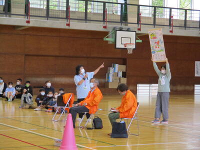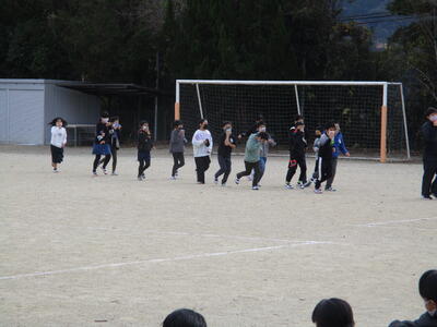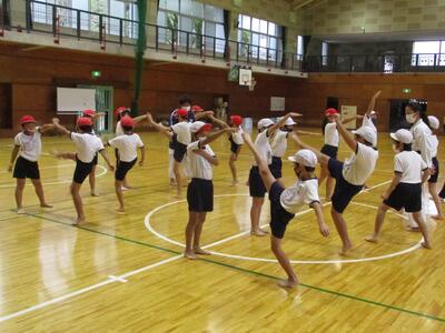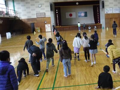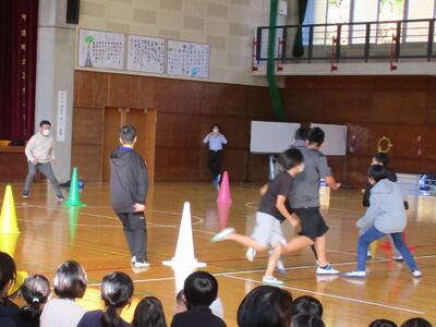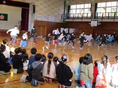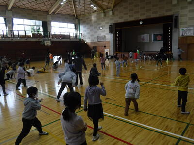 表彰式の後は、児童会執行部による「友だちいっぱい大作戦」で、全校児童が一緒に「だるまさんがころんだ」を楽しみました。