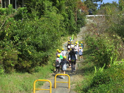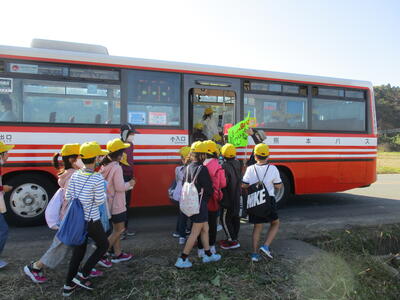 そのような広い校区を、先日から2年生が生活科の学習で探検をしています。先週までに、12地区のうち6つの地区を探検しました。先週の金曜日(11月19日)は「上田口」「下田口」「和田内」地区へ歩いて行き、路線バスに乗って帰りました。