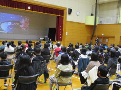 先週の金曜日(1月21日)は、全校集会がありました。今回の集会では、生活安全委員会から「あいさつレベル」についての提案があり、感染症拡大防止のため、事前に録画したものを各教室で視聴し、それをもとに話し合う形で実施しました。