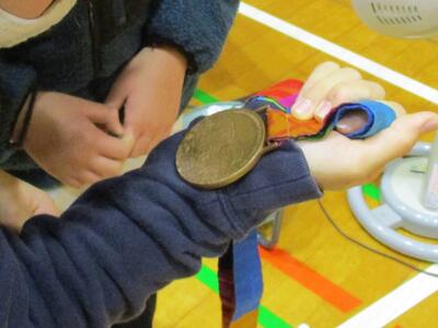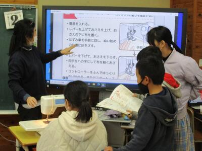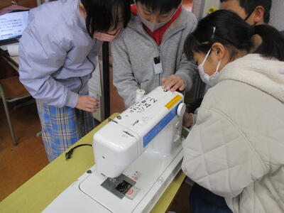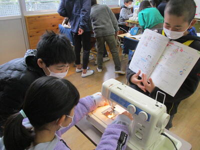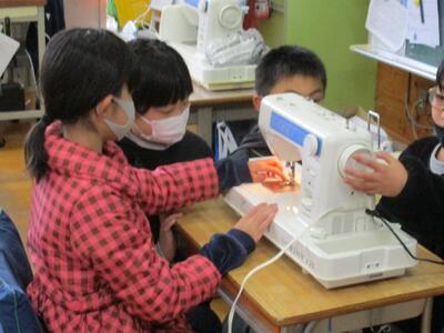 初めてミシンに触れる児童がほとんどですので、今日(2月2日)は、安全で正しいミシンの使い方を友だちと協力しながら丁寧に学習しました。