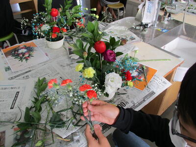 一人2個ずつ作成し、そのうち1個ずつを町内にある高齢者施設に色紙などを添えてプレゼントしたところ、たいへん喜んでいただきました。この体験を通して、花が人々の心を豊かにするというすばらしさを、改めて感じることができたようです。