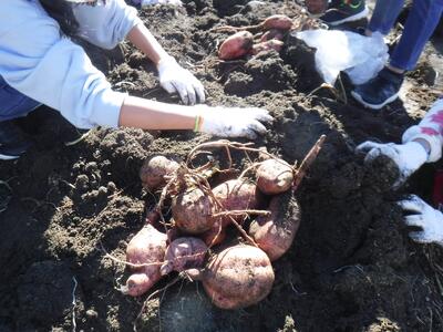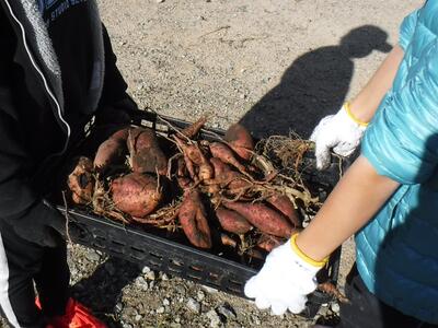【学校生活】さつま芋の収穫とリンゴの寄贈