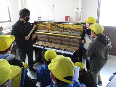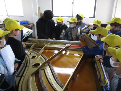 子供たちは「ピアノを修理する方法」や「「ピアノが故障する原因」など細かいことまで分かりやすく説明していただき、私たち教師も知らなかったピアノの秘密をたくさん知ることができました。
