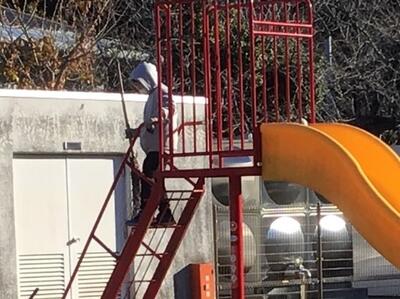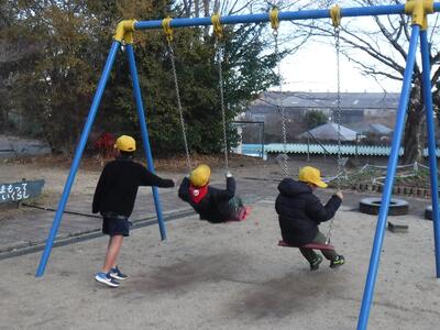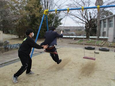 写真は今日(1月14日)の本校児童と成人式の日(1月9日)の卒業生が、それぞれブランコで遊んでいる様子を撮影したものです。