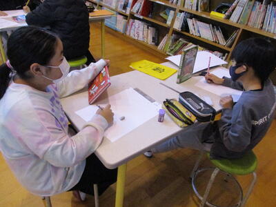 そんな中、図書委員会の子供たちは、毎日の昼休みに本の貸し出しのお世話をしたり、全校児童の読書量を増やす工夫を考えたりする活動などを頑張っています。先週は2学期最後の委員会活動があり、この時間は「おすすめの本」のポスター作りに取り組みました。