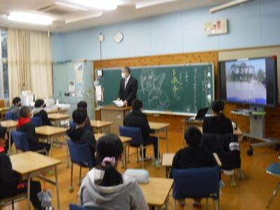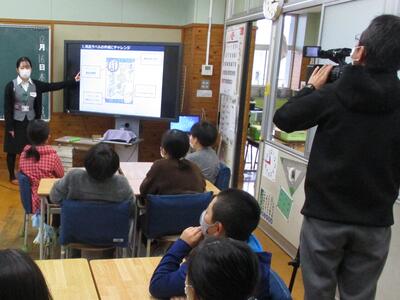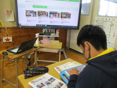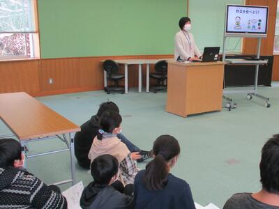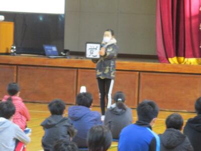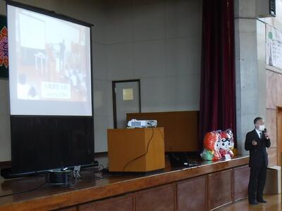 今日(1月31日)は、甲佐町給食センターの栄養教諭の先生に来校いただき、給食週間のまとめとしての「給食集会」をオンライン方式で実施しました。