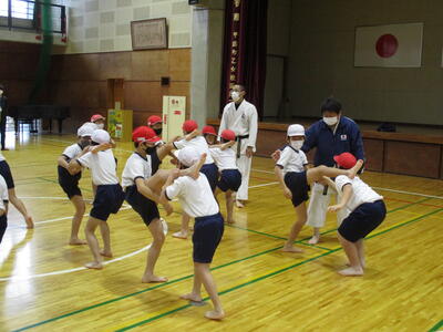 今日(12月17日)は、4年生が「武道体験学習」として空手道を学びました。