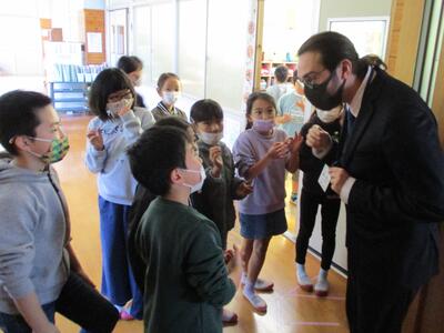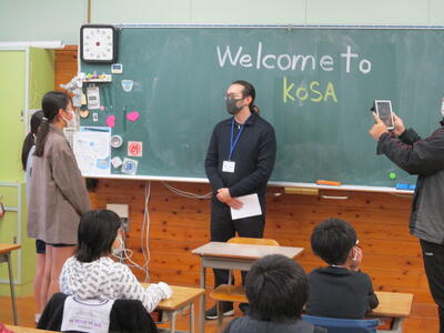 3学期から甲佐町の小中学校で英語を教えていただくために、新しいALT(外国語指導助手)の先生がイギリスから来日されました。今日(12月22日)、本校にあいさつに来られましたので、全学年の授業の様子を参観していただきました。
