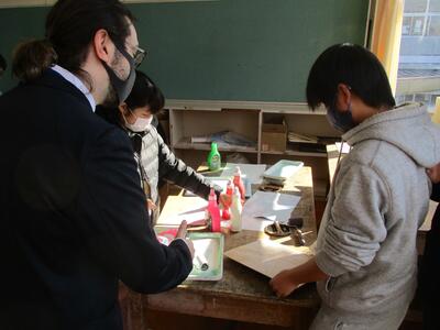 小学3年生になると、社会や理科、そして外国語活動など、2年生まではなかった新しい教科や領域の学習が始まります。特に外国語活動は、担任だけでなく町の英語専科やALT(外国語指導助手)の先生方にも一緒に指導をしていただきながら学習をしています。