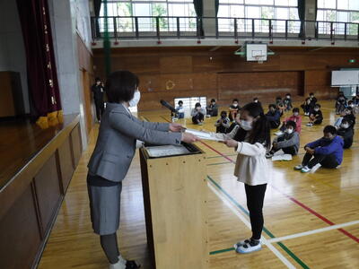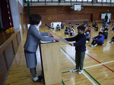 今回は「熊本県発明工夫展」「上益城農業協同組合 書道・ポスターコンクール」「JA共済書道コンクール熊本県大会」「上益城郡版画展」での表彰です。コロナウイルス感染状況が落ち着いてきたため、体育館で全校児童の前で実施したので、他の児童にとっても大きな励みになったようです。(校長が出張でしたので、教頭先生に賞状を渡してもらいました。)