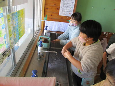 今の季節は水道の水も冷たいため、感染症防止に最も有効な手洗いが不十分になってしまう状況があります。そこで今日(1月18日)は、手洗いの大切さを改めて考える授業を2年生で行いました。