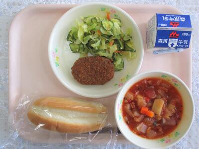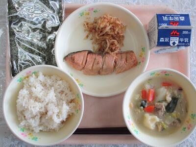 昨日(1月20日)に引き続き、今日(1月21日)の給食も「タイムスリップ給食」でした。今日は「昭和30年代」の給食メニューの再現として、「クジラのメンチカツ」が登場しました。今では貴重なクジラのお肉ですが、この時代は給食でよく使われており、醤油で味付けした「クジラの竜田揚げ」は、当時の給食の中でも人気のあるメニューだったそうです。今朝、登校時に正門に立っていると、「校長先生、今日の給食はクジラですよ。」と言ってくれた児童もいました。