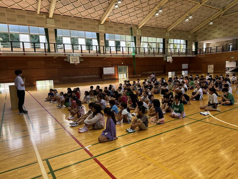 1校時に、2学期の始業式を行いました。最初に4年生が体育館に入場しました。4年生は静かに入場し、静かに座って待ちました。それに続く学年が次々に静かに入場して、落ち着いた雰囲気の中で始業式を始めることができました。