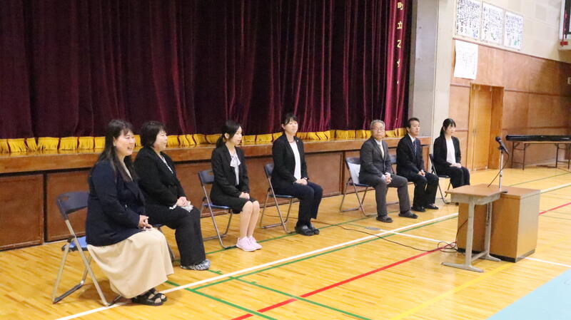 新1年生の子供たちは、元気に体育館に入場し、氏名報告では大きな声で返事をしていました。落ち着いた態度で、最後まで話を聞くことができました。