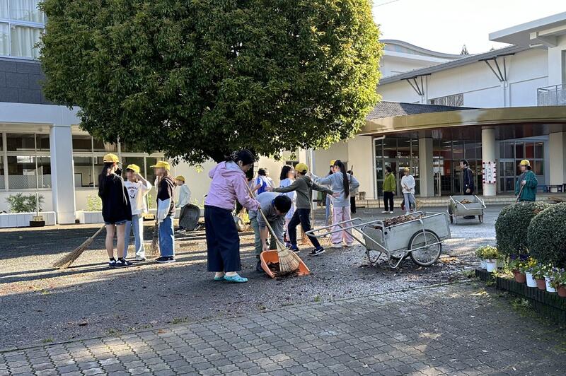 4月9日(火)に入学式を行いましたが、5・6年生が入学式の準備を頑張りました。特に、入学式当日の朝には、前日までの大雨で、校門周辺に落ち葉が大量に散っていました。