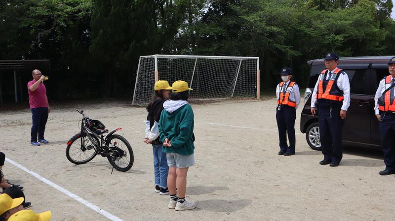 4月の交通教室では、警察の方から「事故に遭わないために、『止まる、見る、確認する』を心がけてください」と話がありました。学校でもしっかりと確認するよう指導しました。