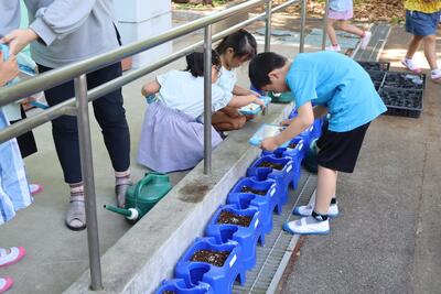 最後に、自分が植えた朝顔の鉢をタブレットで撮影しました。この後、朝顔の観察でタブレットを活用します。