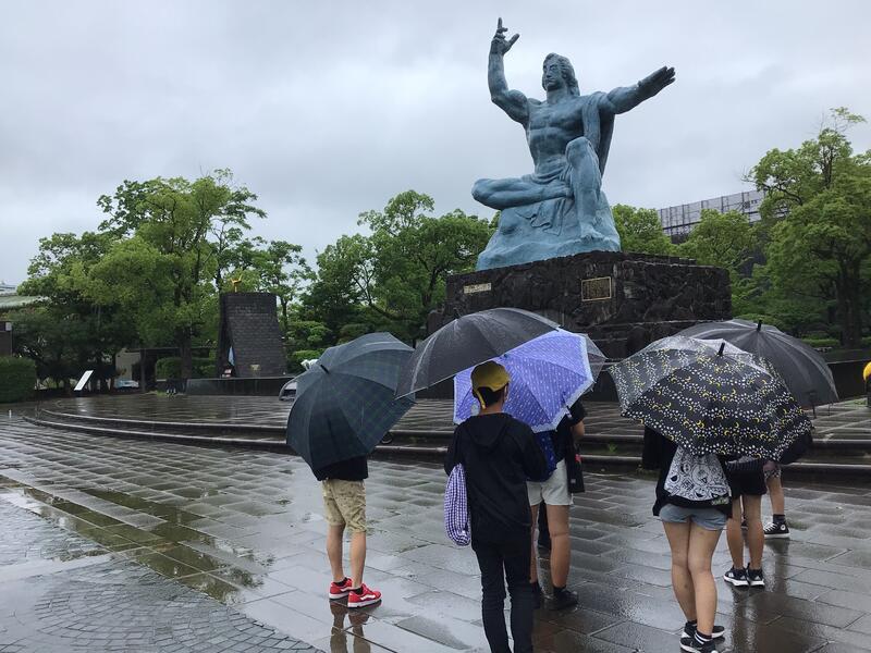 雨が降る中でもしっかりとガイドさんの話を聞く姿が印象的でした。